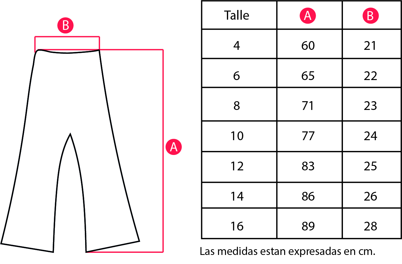Consultá nuestra tabla de talles para elegir el mejor ajuste para tu nena. Si tenés dudas, te sugerimos optar por un talle más grande para mayor comodidad.